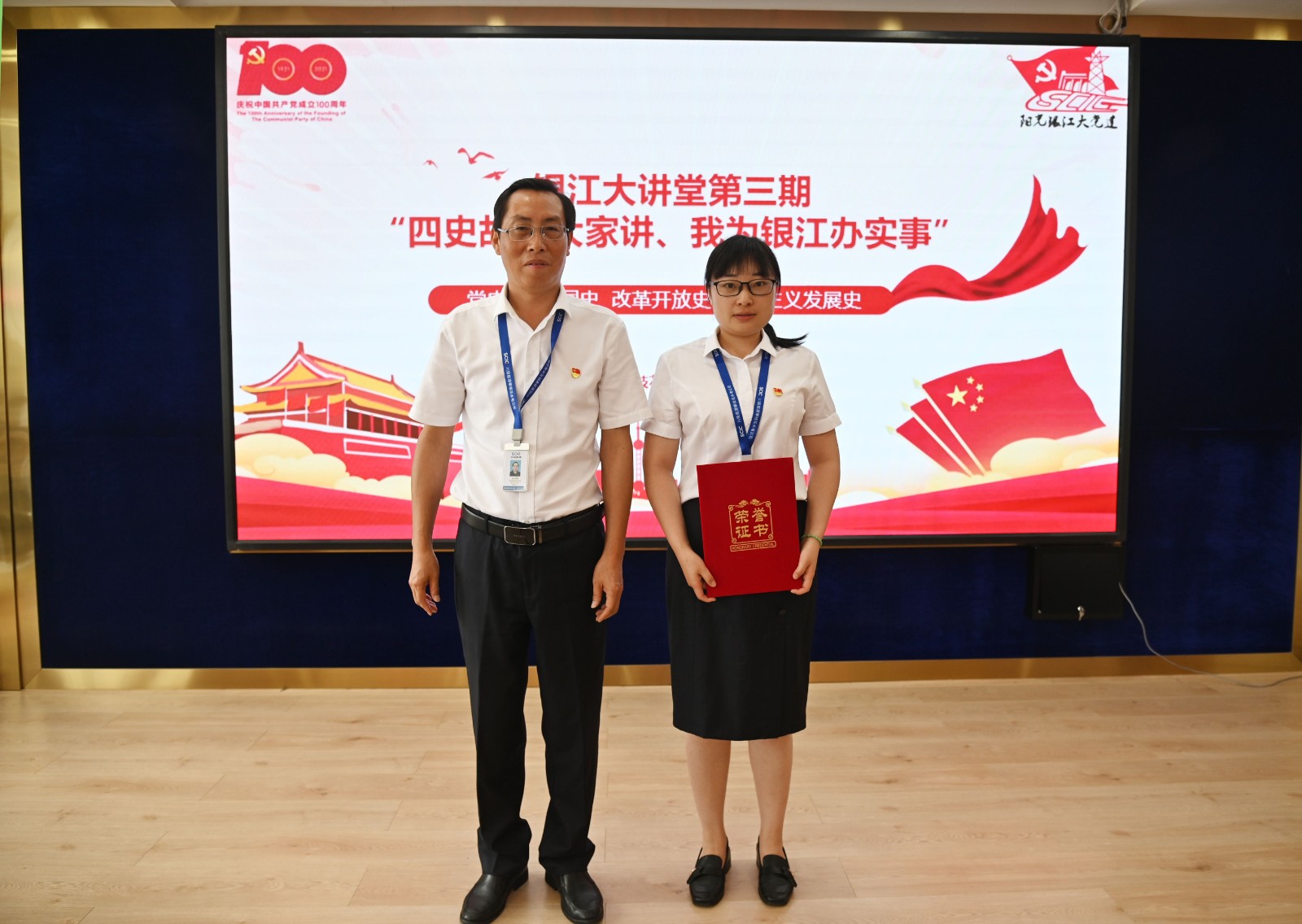 公司黨總支委員、董事會秘書、工會主席鄧勇在開場詞中講到,開展“四史故事大家講、我為銀江辦實事”微黨課演講活動,是公司“陽光銀江大黨建”、《建黨百年獻禮方案》及支部聯(lián)建示范基地創(chuàng)建的工作安排,讓廣大黨員干部走上講臺,以小故事傳遞大能量,小切口展現(xiàn)大主題;結(jié)合黨史學(xué)習(xí)教育和“四史”學(xué)習(xí)要求,落實徐孝剛書記“為工程一線服務(wù),為銀江工程辦實事”的指示要求;結(jié)合工作實際,分享心得感悟,倡導(dǎo)人人為推進工程建設(shè)和公司發(fā)展辦實事。