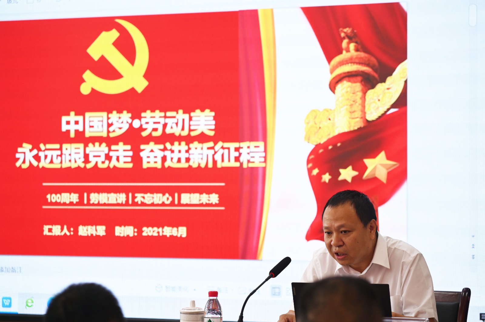 省級勞模、攀枝花市第二小學教育集團教師趙科軍結(jié)合黨史學習和自身支教經(jīng)歷,用簡單淳樸的語言以《傳承勞模精神,面向未來發(fā)展》為題作了宣講分享,并做了紅色書籍《把一切獻給黨》的讀書分享。