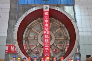 【攀水電】川投能源銀江水電站5號機組轉(zhuǎn)子與定子吊裝成功