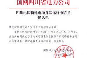 【攀水電公司】銀江水電站獲電網(wǎng)并網(wǎng)運(yùn)行申請(qǐng)確認(rèn)單