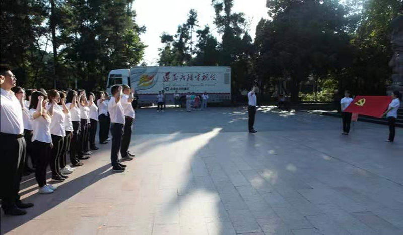 在紅軍山烈士陵園“紅軍烈士永垂不朽”紀念碑前,全體人員向紅軍烈士敬獻花籃、鞠躬致敬,表達對革命先烈的崇敬緬懷之情。由公司紀委書記冉蘭平領(lǐng)誓,面對黨旗重溫入黨誓詞,鏗鏘有力的莊嚴誓言激蕩在每個黨員心中。