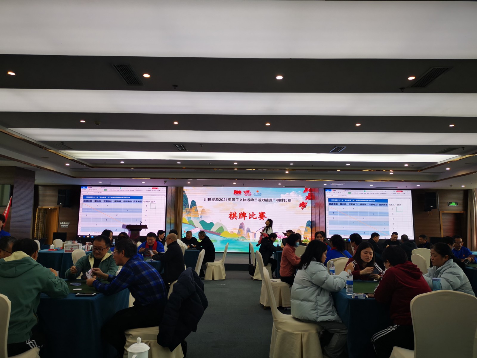 2021年12月29日-30日,在新的一年即將到來之際,由川投能源主辦,攀水電公司承辦的川投能源“活力能源”職工文體活動棋牌比賽火熱開賽,此次棋牌比賽是為了在繁忙的一年之余,給大家的工作生活增添樂趣與快樂,補充活力與動力,同時增進川投能源和所屬企業(yè)間的友誼。本次比賽共有能源本部、川投電力、攀水電、交大光芒、天彭電力、槽漁灘六支代表隊共70余人參加。