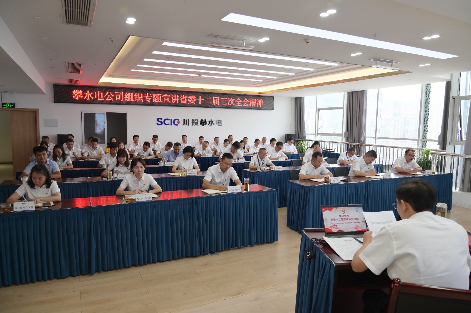 為進(jìn)一步引導(dǎo)廣大職工深入學(xué)習(xí)貫徹省委十二屆三次全會(huì)重大決策部署,激發(fā)大家干事創(chuàng)業(yè)、堅(jiān)定推動(dòng)高質(zhì)量發(fā)展的精氣神,8月19日下午,川投能源副總經(jīng)理、攀水電公司黨總支書記、董事長(zhǎng)徐孝剛進(jìn)行省委十二屆三次全會(huì)精神專題宣講。公司全體黨員、職工,各參建單位黨員職工代表共計(jì)45人參加此次宣講會(huì)。