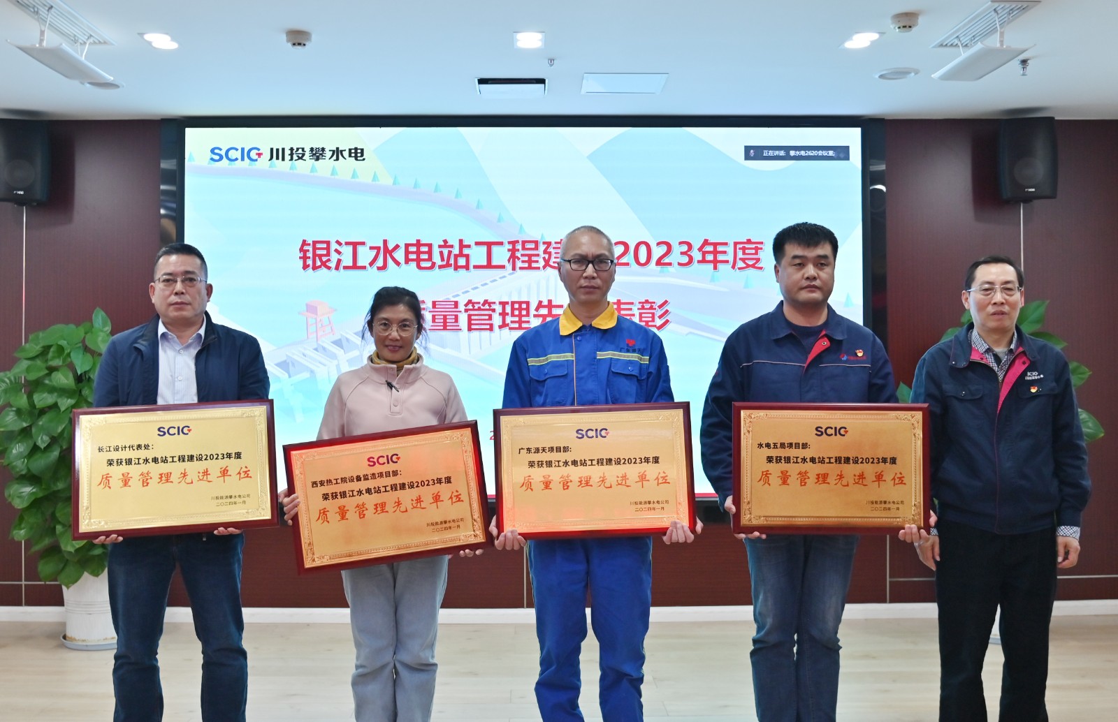 會(huì)上,公司副總經(jīng)理唐伽宣讀了《關(guān)于表彰銀江水電站2023年度質(zhì)量管理先進(jìn)單位、先進(jìn)集體和先進(jìn)個(gè)人的通報(bào)》文件,徐孝剛向榮獲2023年度質(zhì)量管理先進(jìn)單位的長(zhǎng)江設(shè)計(jì)代表處、西安熱工院設(shè)備監(jiān)造項(xiàng)目部、水電五局項(xiàng)目部、廣東源天項(xiàng)目部頒發(fā)了獎(jiǎng)牌;公司黨總支副書記、董事會(huì)秘書、工會(huì)主席鄧勇,公司黨總支委員、紀(jì)檢小組長(zhǎng)楊銳向榮獲先進(jìn)集體的長(zhǎng)江設(shè)計(jì)代表處壩工專業(yè)組、貴陽院監(jiān)理部土建工程管理部、西安熱工院設(shè)備監(jiān)造項(xiàng)目部駐哈電監(jiān)造站、水電七局項(xiàng)目部砂石工區(qū)、水電五局項(xiàng)目部土建三隊(duì)、廣東源天項(xiàng)目部主機(jī)班等13個(gè)集體頒發(fā)了獎(jiǎng)牌。徐孝剛向獲獎(jiǎng)的單位、集體及個(gè)人表示了祝賀,要求他們?cè)诮窈蟮馁|(zhì)量管理工作中發(fā)揮好先鋒模范帶頭作用,促進(jìn)各參建單位共同提高質(zhì)量管理水平,把銀江水電站建設(shè)成“精品工程、樣板工程、陽光工程”。